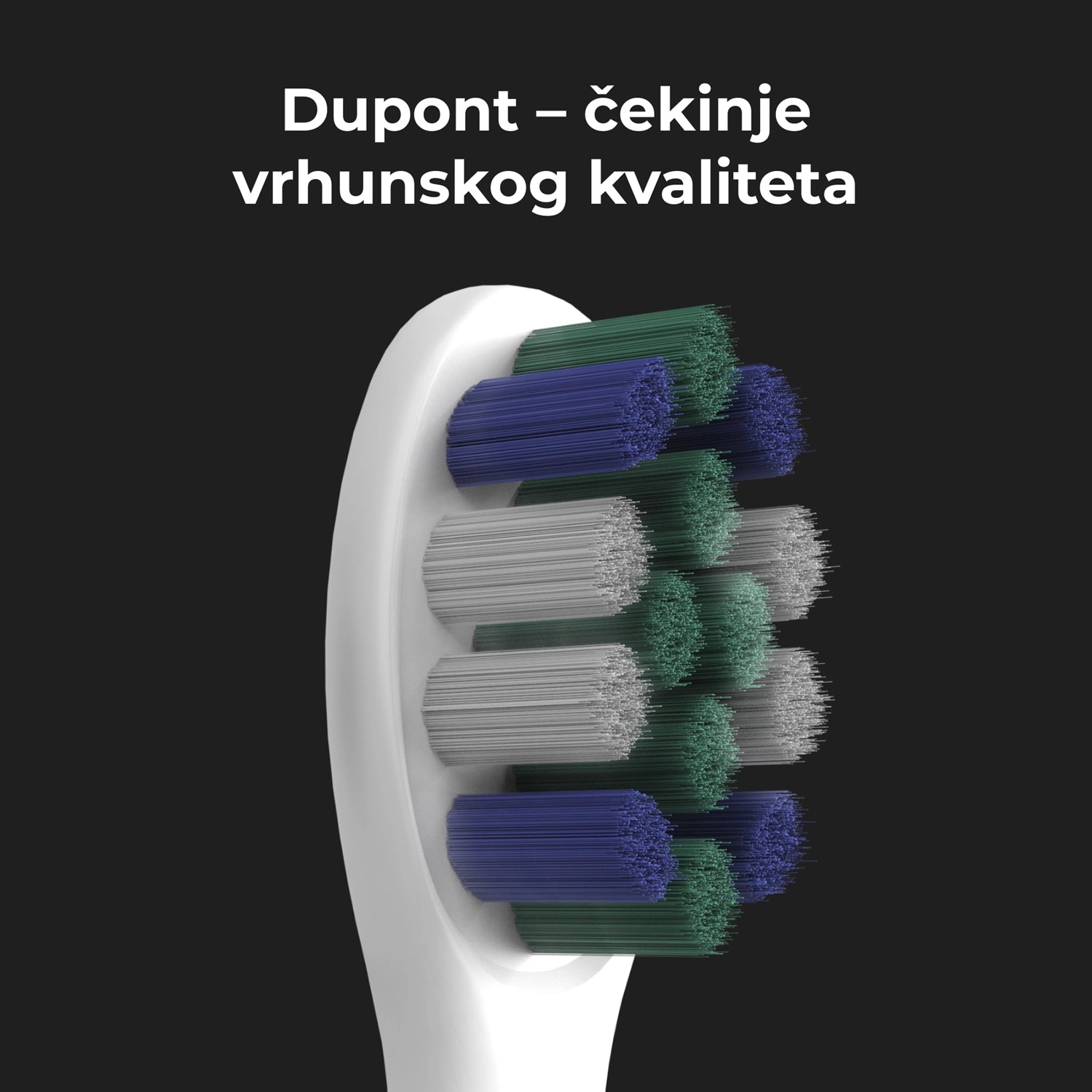 Premium DuPont vlakna čine četkicu pogodnom za osjetljive desni, proteze i implantate, a Soft režim omogućava korištenje i djeci od 3 godine i više.